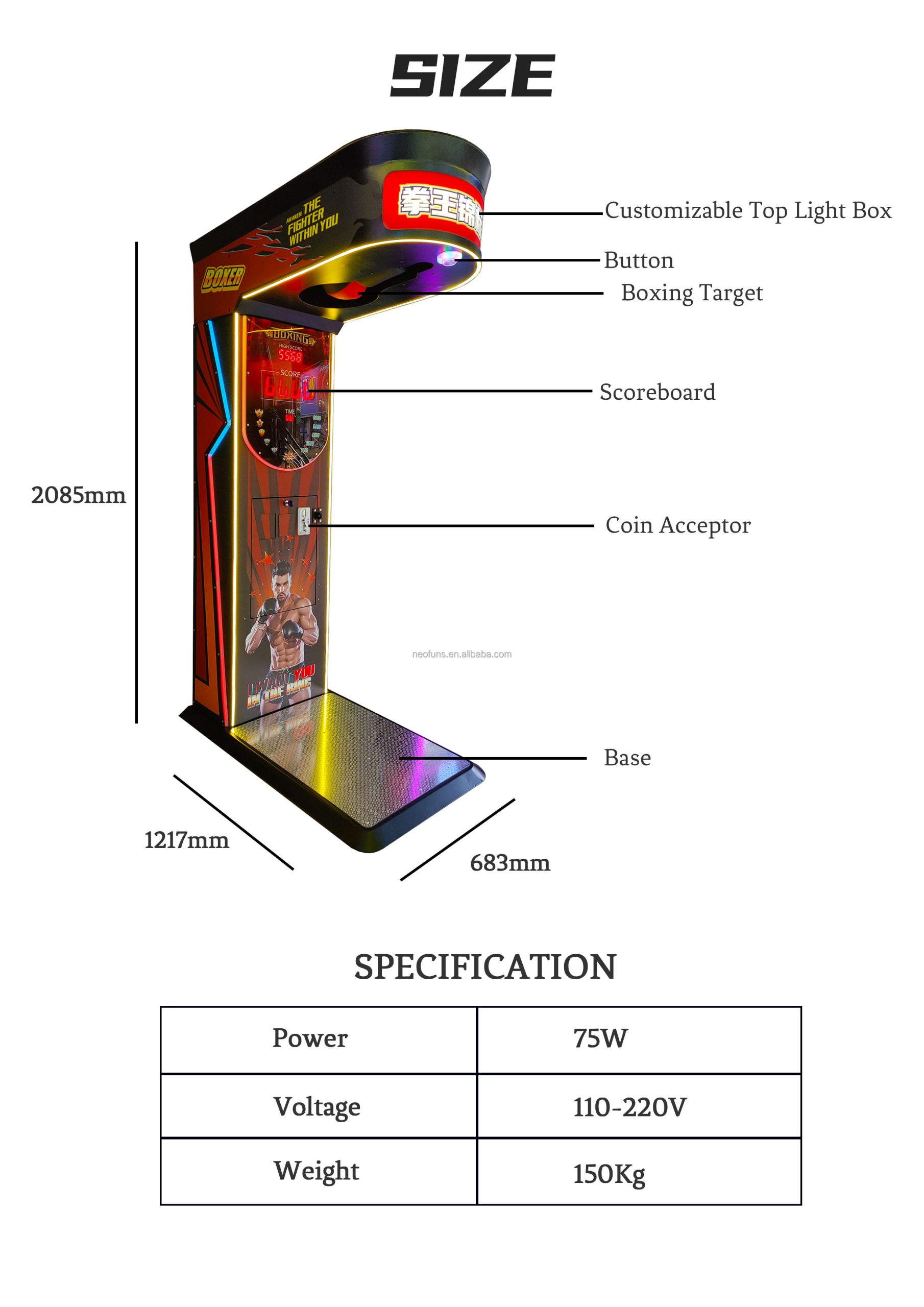 Boxing Machine is the ultimate indoor playground arcade game for all ages. This machine can choose multiple versions, which can be divided into pure play version / lottery version / cola version. Small footprint, very suitable for smaller spaces, suitable for playgrounds, shopping malls, store entrances. With its easy-to-install design and reliable performance, you can be confident that the Boxing Machine will provide endless entertainment for years to come. Its high quality components ensure that your machine requires low maintenance while still delivering great performance. Support multiple payment methods] anti-counterfeit coins / anti-card coins / support for coin acceptors / cash machines / card readers / credit card payment equipment. Experience the benefits of this powerful punching bag without ever entering a traditional gym!