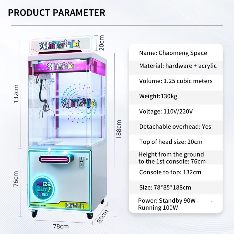 * Adjustable difficulty Set claw strength and game duration to control win rate