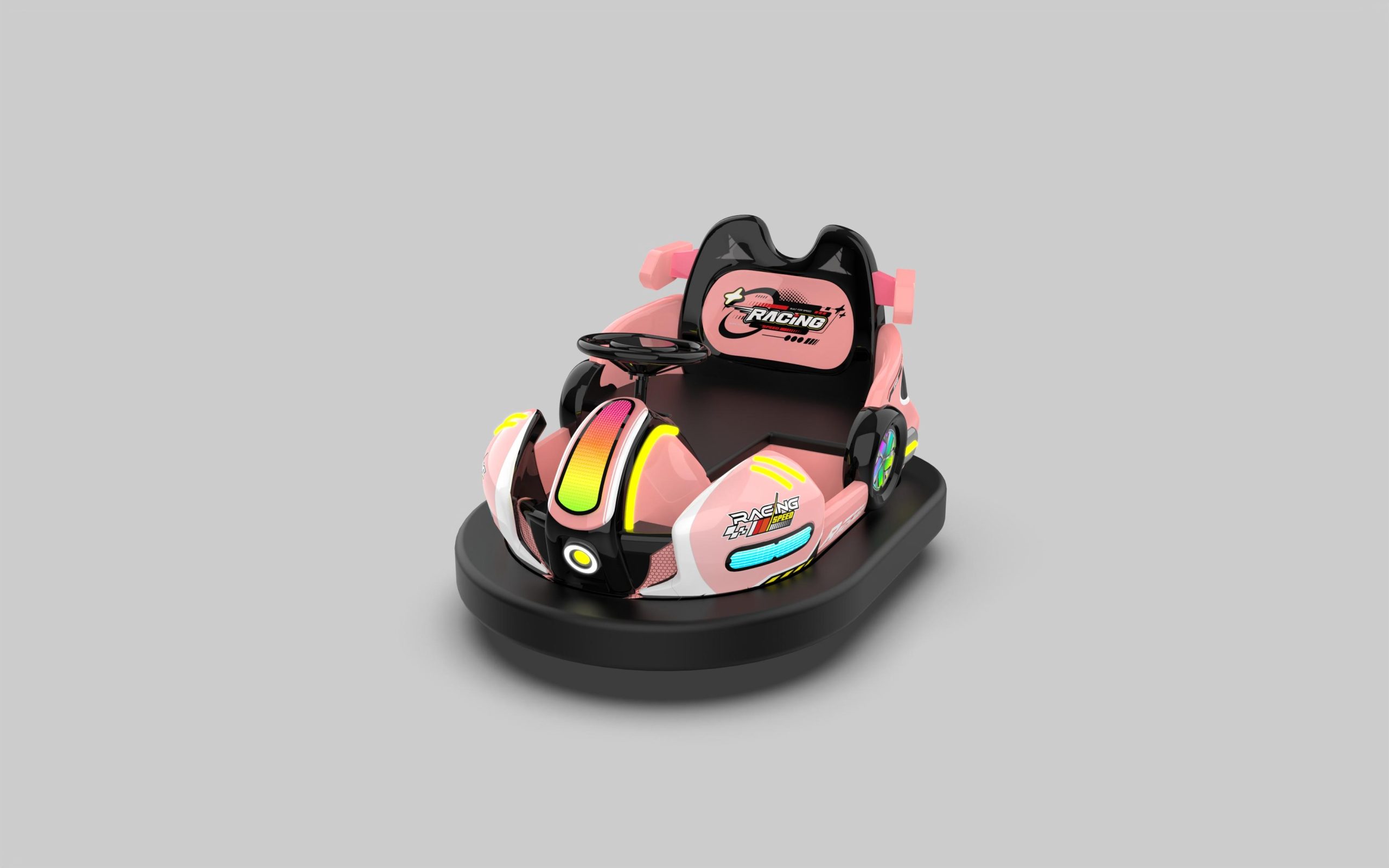 (2)Soft-back design, more comfortable ride; (3)Before and after the lighting system, the visual is more beautiful; (4)Fixed battery design, walking more stable, and can assemble a large battery; (5)Start charger. LED indicates the charging progress, microcomputer control and efficient charging. Battery does not heat, no bubble, prolong battery life; (6)Ultra wear-resistant polyester rubber wheel, with mechanical overload protection system, a maximum of life insurance do not change the wheels, significantly reducing the use cost; (7)Unique dual drive system to enhance the grip, which can adapt to a variety of ground, such as floor tiles, cement floor, etc.; (8)1-30 minutes of play time can be adjusted by you, can be customized according to your needs child play time; |