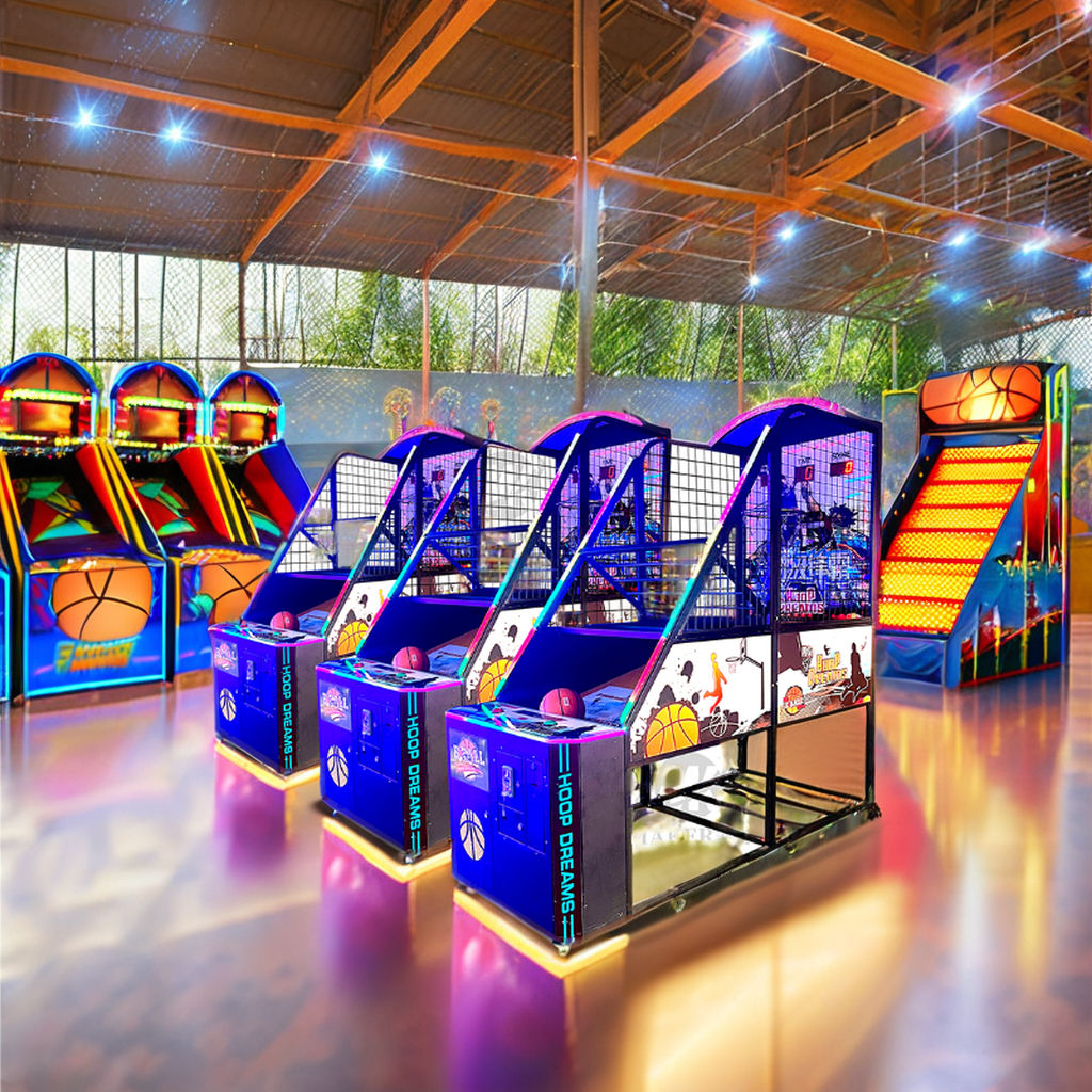 Metal Coin Street Basketball Shooting Arcade Game Machine with Motion Sensing and LED Board